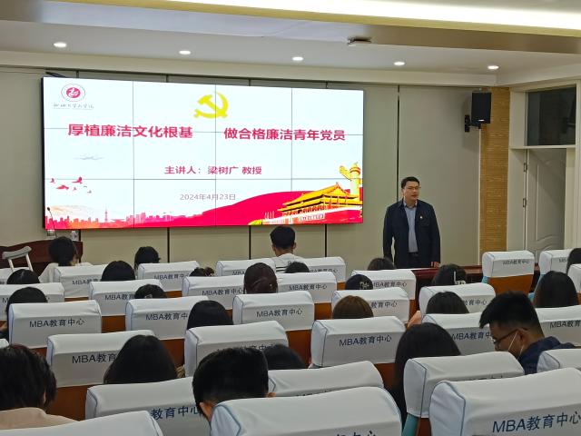 4月23日,威斯尼斯人8188cc官网(质量学院)于东校区1#707举办入党积极分子专题党课培训会。学院党委纪检委员、副院长梁树广以《厚植廉洁文化根基 做合格廉洁青年党员》为题,对全体入党积极分子进行了培训。