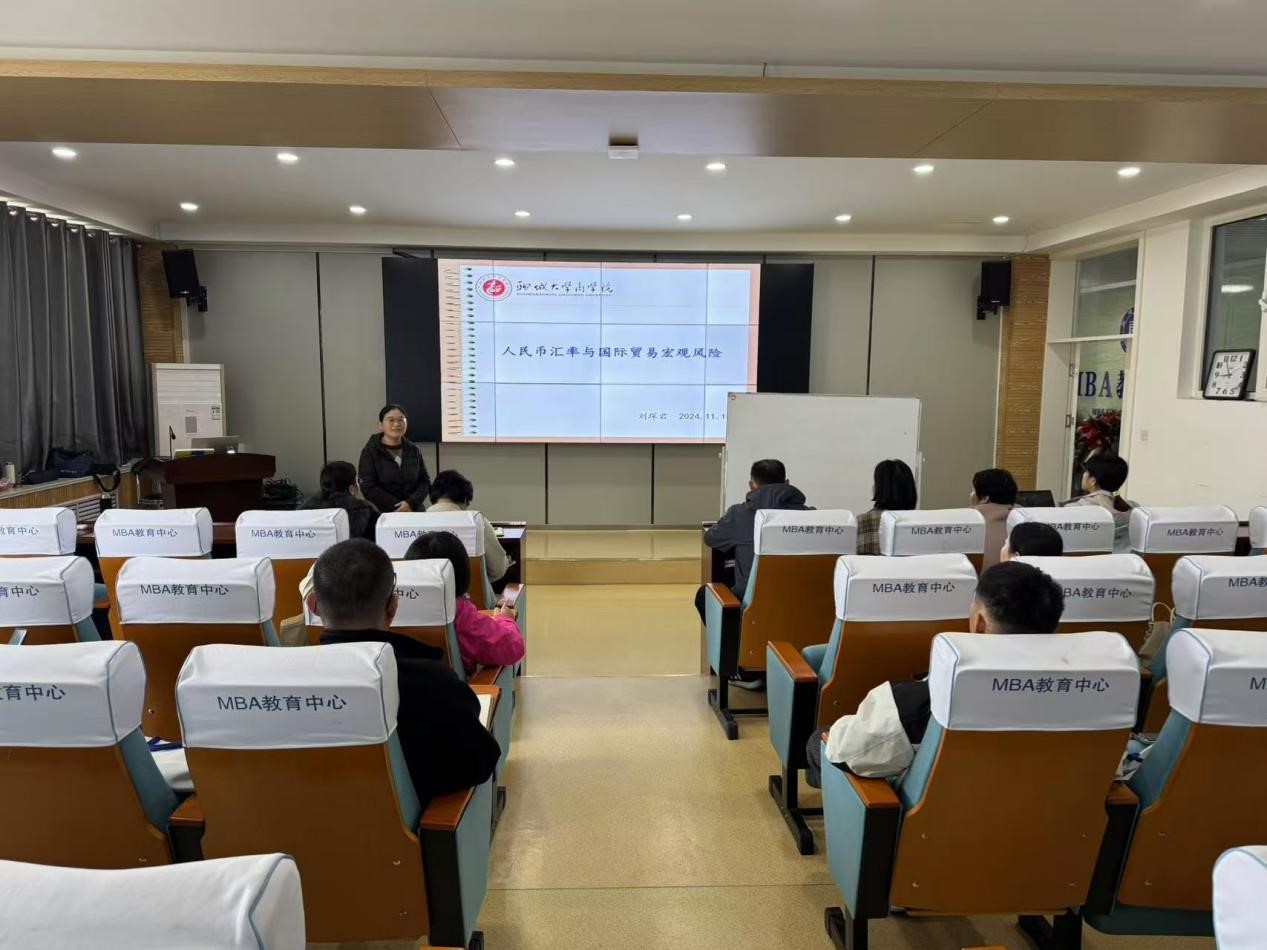 11月16日的课程由中国人民大学国际贸易专业博士、聊城市社会科学学科新秀、聊城市农商行独立董事刘琛君副教授和中国人民大学国际贸易学博士韩晔联合授课。刘琛君就“人民币汇率与国际贸易宏观风险”进行了深入讲解,通过实际案例分析,使学员们对汇率波动对国际贸易的影响有了更深刻的理解。下午,韩晔围绕“当前全球贸易与投资发展新趋势”展开授课,分享了全球贸易的最新动态和投资机会,为学员们打开了国际视野。