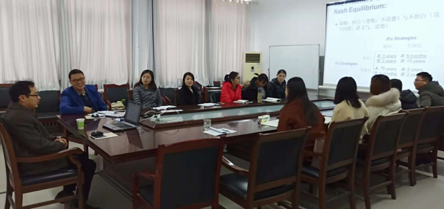 为提高学院研究生理论水平,2018年11月18日,威斯尼斯人8188cc官网邀请辽宁大学优秀青年学者、博士生导师郭广珍教授来学院给经济学专业研究生讲博弈论。郭广珍教授研究方向为新政治经济学,主要讲授博弈论、产业组织和微观经济学,在《中国工业经济》、《中国软科学》发表学术论文20余篇,主持国家自然科学基金、教育部人文社科基金和博士后基金等多项国家和省级项目,博士后导师是我国著名经济学家张军教授,曾在美国西北大学访学一年。我院全体研究生参与了此次报告。