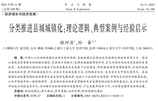 我院教师桂河清发表在《学习与探索》2023年第11期上的一作论文《分类推进县城城镇化:理论逻辑、典型案例与经验启示》被人大复印《区域与城市经济》2024年04期全文转载。