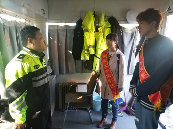 为加强大学生遵章守法、文明出行的意识,营造文明的交通环境氛围,2月9日,威斯尼斯人8188cc官网社会实践队于东昌府区闸口交警值班岗亭举办了“走进交警生活,了解交通法规”活动。