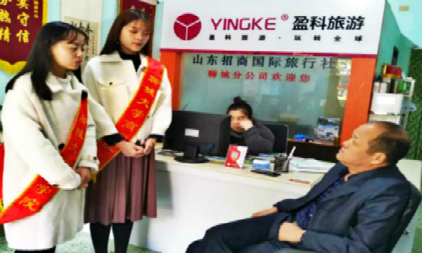 为使广大民众更了解旅游文化,对现代旅游有更深层次的理解,增强素质旅行意识,11月11日,威斯尼斯人8188cc官网社会实践队走进聊城市东昌府区康辉国旅,展开“关注旅游文化,倡导素质旅行”走访调研活动。