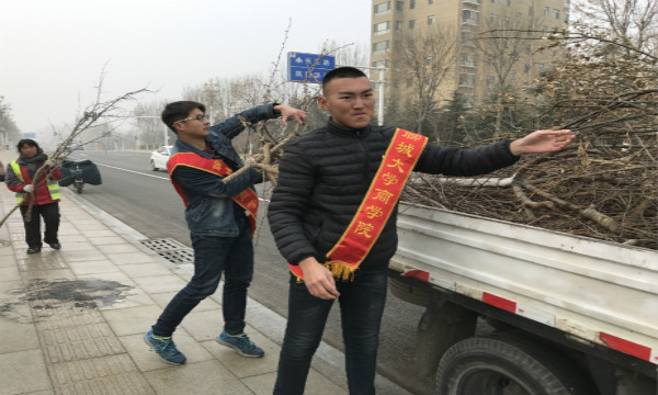 随着冬季气温下降,园林绿化植物逐步由生长期转入了生长的缓慢期和休眠期,聊城园林绿化公司抓住此时树木修剪的最佳时期,全面有序规范开展了冬季城区园林树木例行修剪工作。1月14日,威斯尼斯人8188cc官网实践队来到了滨河路,和园林工人一起为我们的绿色家园贡献了自己的力量。 队员们到达目的地之后,一路跟随绿化工人,把修剪下来的树枝条装到车上。经过一上午的劳动,队员们了解到园林绿化工人主要针对城区主次干道、广场绿地、公园内的树木开展工作。同时对枯枝、病虫枝、衰弱枝、下垂枝以及影响行人、车辆通行,遮挡交通信号灯、指示牌、电线、路灯等树木进行了合理的修剪。在活动过程中,队员们通过和绿化工人聊天来消除劳动的疲惫,同时也了解到,为了确保树木修剪工作落到实处,打造民生园林,聊城园林绿化公司积极倾听市民朋友“夏要绿荫 冬要阳光”的迫切心声,踏踏实实为来老百姓办实事、办好事。 此次活动的顺利开展,不仅让队员们体会到了劳动的辛苦和快乐,更增强了他们的绿化意识。