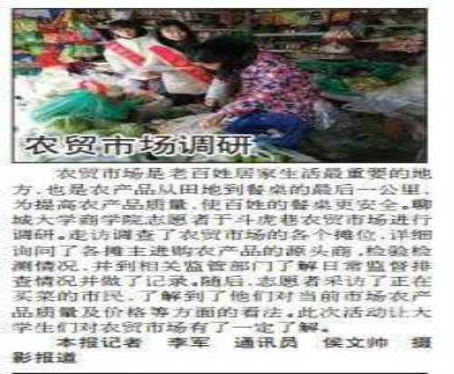 农贸市场是老百姓居家生活最重要的地方,也是农产品从田地到餐桌的最后一公里,为提高农产品质量,使百姓的餐桌更安全。威斯尼斯人8188cc官网志愿者于斗虎巷农贸市场进行调研。志愿者走访调查了农贸市场的各个摊位,详细询问了各摊主进购农产品的源头商、检验检测情况,并到相关监管部门了解日常监督排查情况并做了记录。随后,志愿者采访了正在买菜的市民,了解到了他们对当前市场农产品质量及价格等方面的看法。此次活动让大学生对农贸市场有了一定的了解。