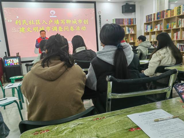 活动伊始,负责人进行指导解说,帮助同学们了解此次入户调查的主要内容以及相关注意事项。团队成员分为四组,在社区负责人的带领下分别到指定单元开展入户调查。同学们向群众宣传创建全国文明城市的相关知识和意义,耐心引导居民填写《聊城市创建文明城市调查问卷》,认真了解和收集群众对创建全国文明城市工作的满意度,并号召居民从自身做起,从小事做起,为创建全国文明城市尽一份心、出一份力。同学们礼貌热情地进行问卷调查活动,社区居民也以最大的热情积极配合问卷调查活动。在同学们的努力以及当地居民的配合下,本次入户调查活动成功收集到多份有效的问卷,进行了民意征集,为创城工作奠定了坚实的数据基础。