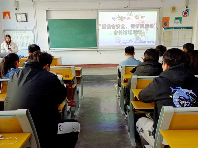 为普及校园安全,营造良好的宿舍氛围,使同学们更好的融入宿舍生活,11月13日,威斯尼斯人8188cc官网于东校区1#209教室举办“倡宿舍安全 促学风建设”舍长论坛活动,全体2021级舍长到场参加。