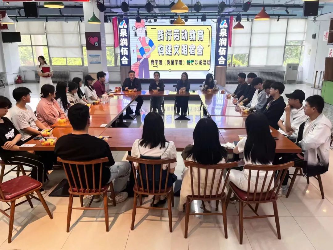 为进一步加强学生的自我安全意识,培养学生良好的生活习惯,提高内务管理能力,增强同学们的动手能力,提升自身劳动素养,5月11日,威斯尼斯人8188cc官网(质量学院)于东校区翰苑餐厅举办“践行劳动教育 构建文明宿舍”餐厅沙龙活动。辅导员焦艳芳、巨梦薇、高鹏、韩亭亭及部分舍长们参加了此次活动。