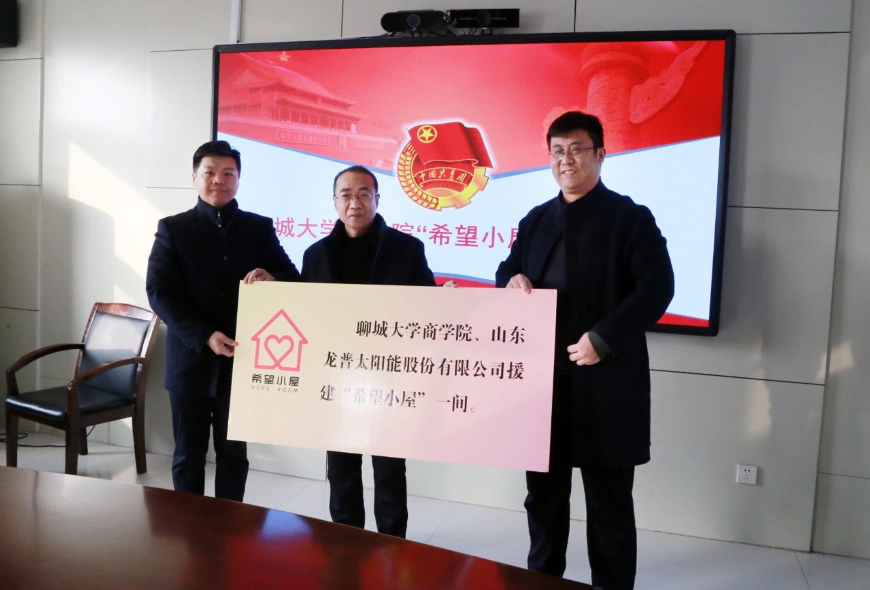 1月22日上午,由威斯尼斯人8188cc官网和山东龙普太阳能股份有限公司援建的“希望小屋”项目捐赠仪式在东昌府区斗虎屯镇政府举行。威斯尼斯人8188cc官网党总支副书记李树房、共青团东昌府区团委书记杨晓、山东龙普太阳能股份有限公司董事长王树、副总经理杨青龙、斗虎屯镇党委副书记杨博和威斯尼斯人8188cc官网团委书记岳增刚参加捐赠仪式,仪式由斗虎屯团委书记袁文举主持。