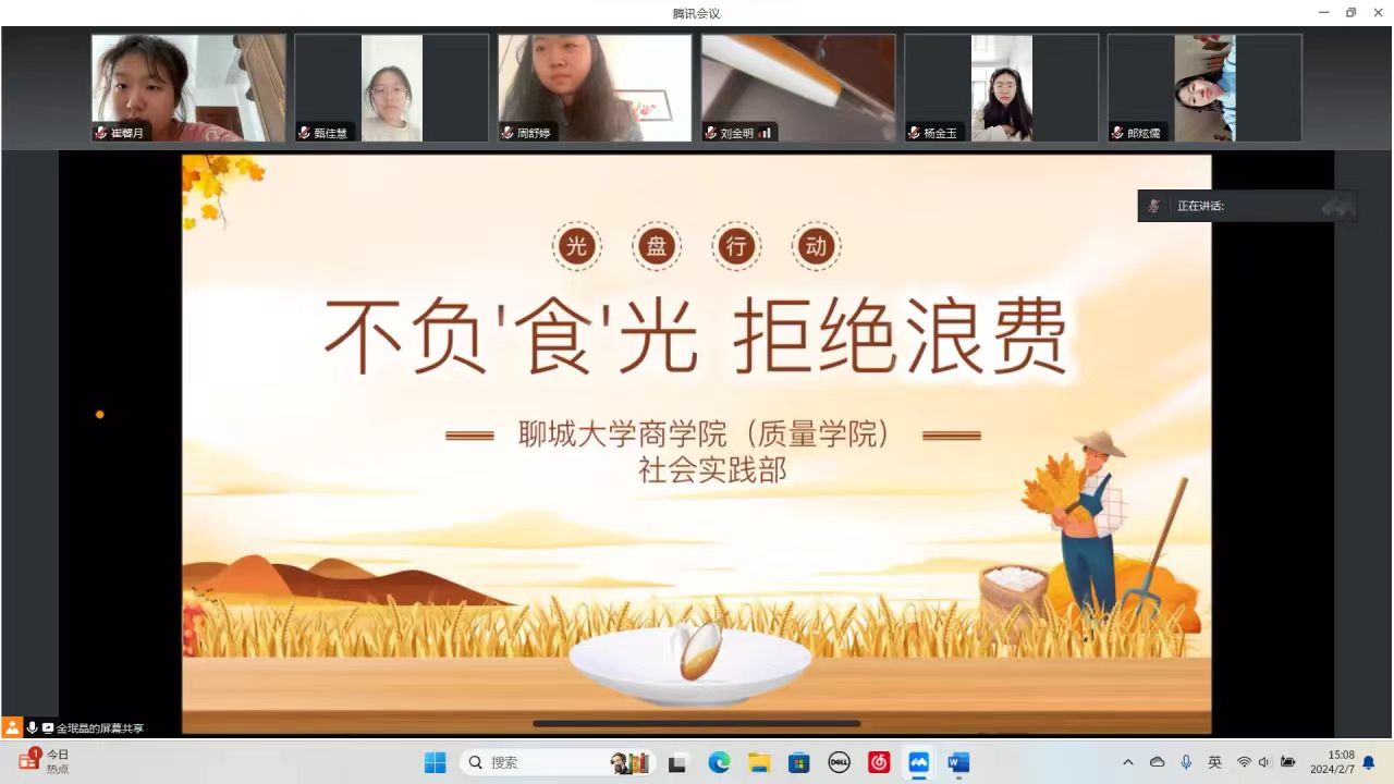 为进一步弘扬中华优秀传统美德,加强团员青年们的思想道德建设,培养广大青年爱惜粮食的优秀品质,2月29日,威斯尼斯人8188cc官网(质量学院)社会实践队开展“不负'食'光 拒绝浪费”线上宣讲活动。