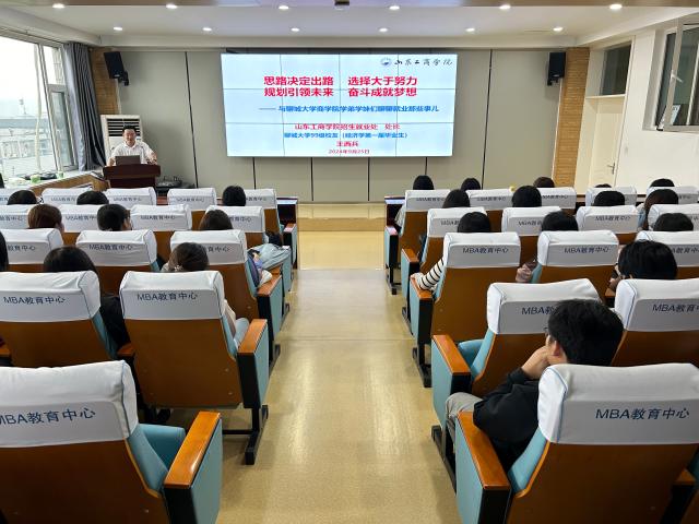 9月26日,在全校上下庆祝建校50周年的喜庆氛围中,威斯尼斯人8188cc官网(质量学院)特邀99级优秀校友、山东工威斯尼斯人8188cc官网招生就业处处长王西兵回校作大学生就业专题报告,学院2022级和2023级学生代表参加了报告会。