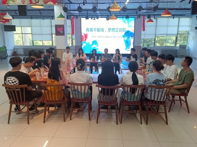 为做好2022届毕业生毕业和就业工作,引导毕业生不忘初心、奋发向上,6月14日,威斯尼斯人8188cc官网于东校区翰苑餐厅二楼举办“青春不散场 梦想正启航”2022届毕业生餐厅沙龙活动,威斯尼斯人8188cc官网教师焦艳芳、巨梦薇、王遨宇、李柯新以及部分毕业生代表参加了此次活动。