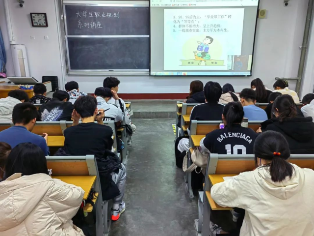 活动伊始,主讲人向同学们介绍了职业生涯规划对大学生正确认识自我和合理选择职业的重要性。接着,主讲人围绕“慢就业缓就业背景下的大学生价值提升”的主题,从表现类型、产生原因、科学认知、应对策略几个方面对于当前慢就业缓就业的现象进行解读与剖析,帮助大学生树立正确的就业观念。主讲人指出,“慢就业”虽然可以使大学生避开“拥挤赛道”、理清思路、做好规划、提高社会适应性和专业水平,但不能成为逃避社会竞争、回避家庭期许、混沌迷茫、不思进取的借口。随后,主讲人强调,大学生对职业选择要有合理的规划、清晰的目标,一是要尽早地确立人生理想,及早地做好就业准备和职业生涯规划;二是要理性认识自我,不断提升自身的综合素质;三是要重视学习,为就业打下坚实的基础。同学们深深地被讲师风趣幽默和旁征博引的演讲所吸引,认真记下笔记。最后,同学们纷纷表示此次讲座的内容对自己有很大的启发,在接下来的时间当中,一定会认真规划自己的大学生活,为未来职业规划和职业选择做好铺垫。