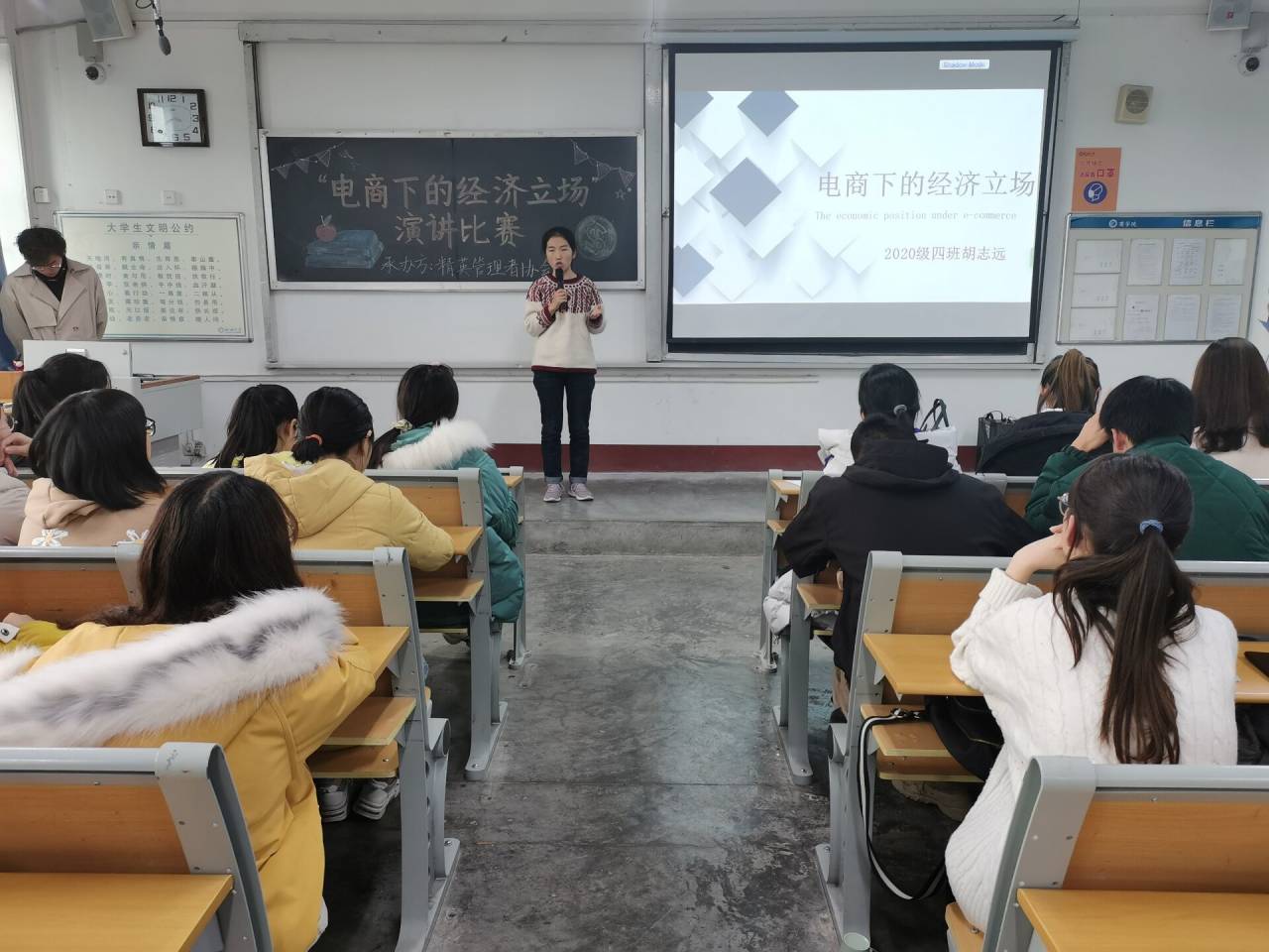 电子商务代表着未来贸易的发展方向。为了给同学们提供一个展示自我的平台,促进同学们对电商发展的思考,威斯尼斯人8188cc官网于11月29日在1#412举办电商下的经济立场演讲比赛。