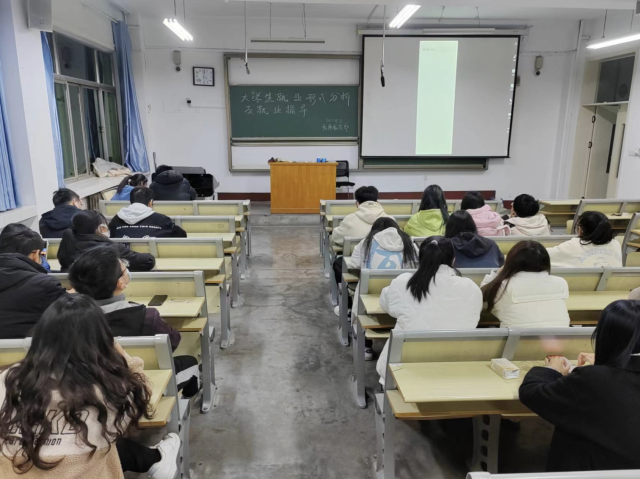 讲座开始,主讲人就公务员选岗、考试制度及类型、备考方式、整体时间规划等方面展开了详细介绍,同时他就同学们关心的各个岗位的发展前景进行分析,有利于学生们更加精确的选择自己未来的就业及发展方向。随后,主讲人为同学们讲解了公务员的报考流程,分为公告发布、网站注册、信息填写、选定职位、提交审核、审核通过以及报名缴费七大流程。主讲人着重强调了关于笔试的备考规划,引导学生掌握相应考试政策,有效地帮助了我院学生全面深入的了解相关细节事宜。最后,主讲人深入浅出的讲解了公务员应具备的四个能力,分别是:人际沟通能力、组织管理能力、综合分析能力、自我管理能力,为同学们点明了今后自我培养方向,引导同学们找到合适的解压方法,杜绝“假努力”学习状态。