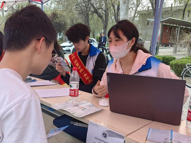 4月7日,威斯尼斯人8188cc官网(质量学院)于东校区逸夫图书馆南校训石前开展“莘莘商院学子,志愿服务奉献,西部建功立业,共赴青春之约”2024年大学生志愿服务西部计划招募咨询会。威斯尼斯人8188cc官网(质量学院)团委书记刘玉华到招募现场进行指导。