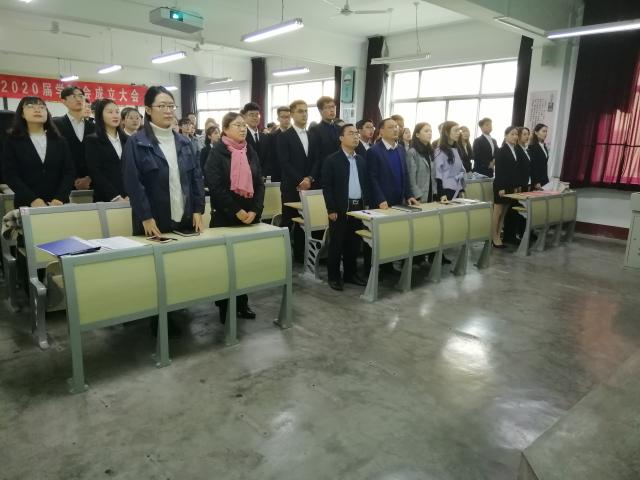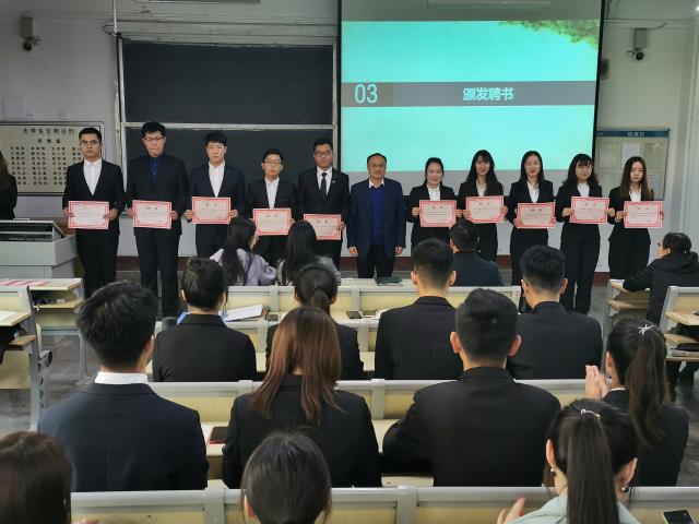 大会开始,全体起立,奏唱国歌。伴着庄严的国歌,2020届威斯尼斯人8188cc官网学生组织成立大会正式拉开了序幕。在工作人员宣布2020届学生会主席团成员、团委委员及部长聘任决定后,由党总支副书记许杰等老师为其颁发聘书。