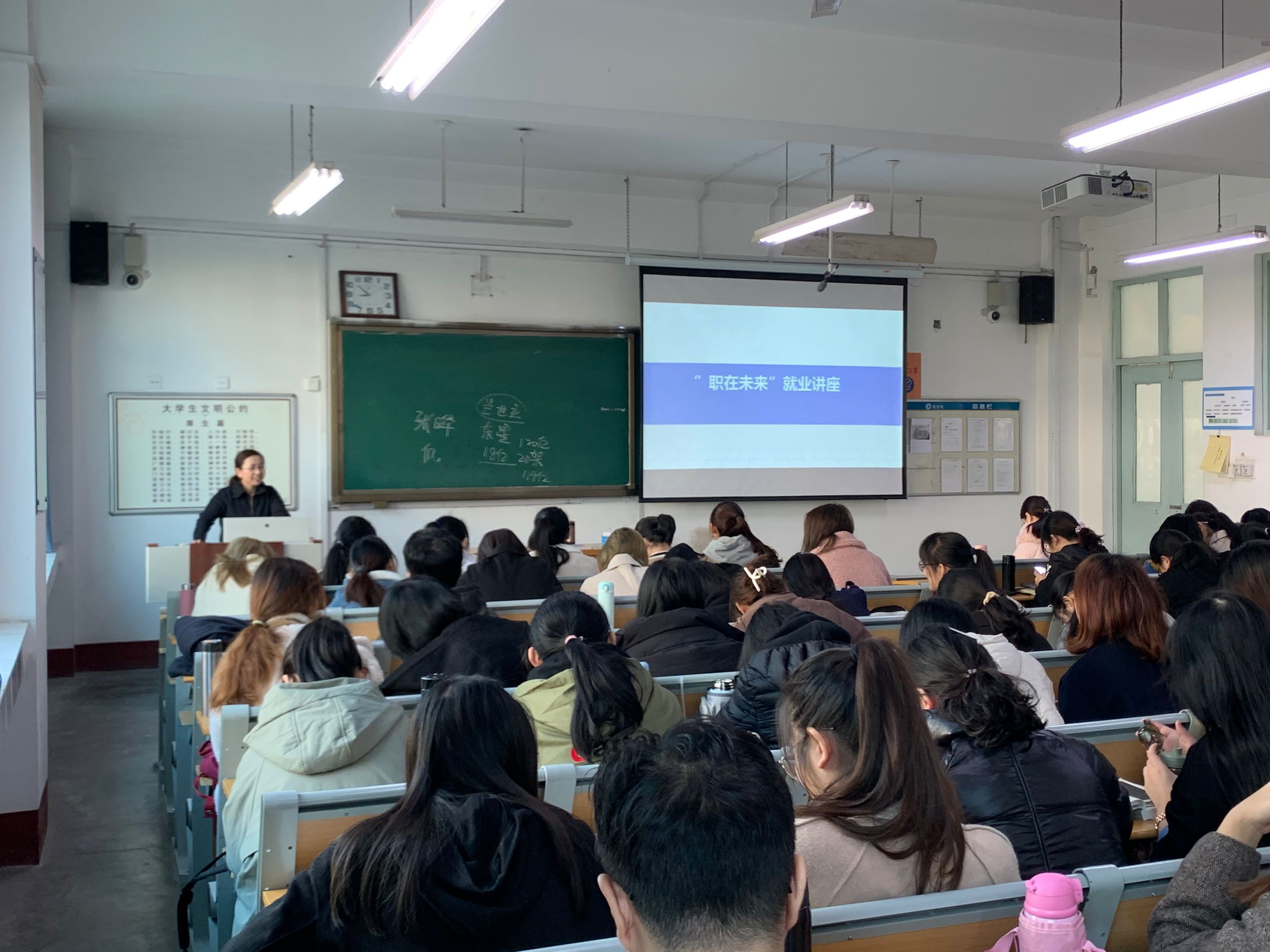 本次活动中同学们提出了自己在职业规划方面的问题,焦老师耐心解答,帮助同学们树立了正确的学习、就业目标。在老师的讲解和指引下,同学们慢慢拨开眼前的团团迷雾,瞭望自己的未来,开始重新认识自我和自己所选的专业,甚至也开始构画自己未来的职业蓝图。同学们从今后的目标中,找寻自己现阶段必须把握住的东西,有重点的学习,提高自己的素质和能力。