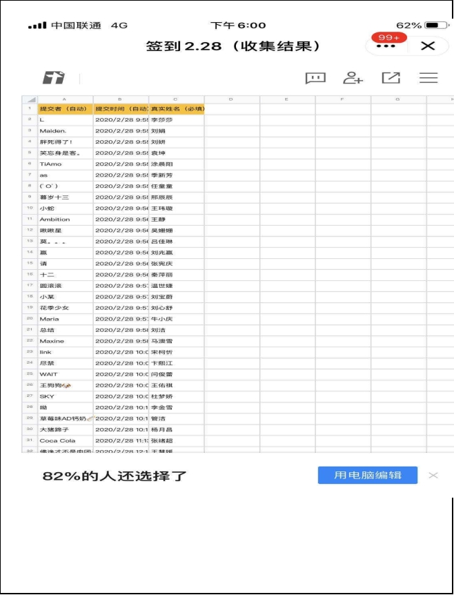为了保证教学效果,监督学生线上学习,有些老师通过各种线上教学平台技术方法,让同学通过线上签到,保证到课率。如有的老师通过QQ在线签到,有的通过雨课堂工具签到,有的通过智慧树学习进度和在线人数查看学生到课率。下图分别为通过QQ、雨课堂和智慧树查看学生到课率情况。