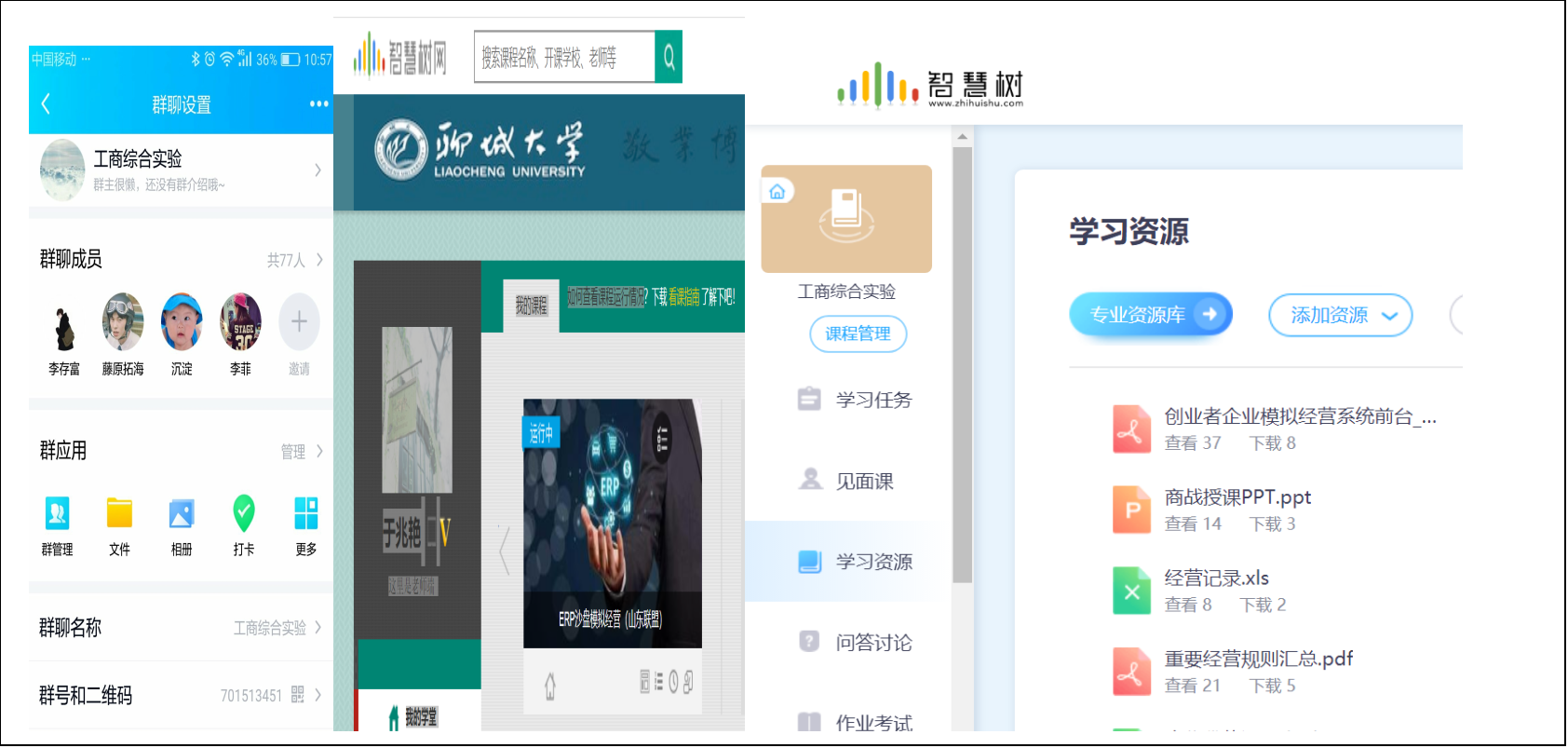 工商管理系教师通过各种形式进行线上教学,有的借助于智慧树平台,让学生在线听课,有的是通过直播,有的是通过下发课件等各种形式。王鹏冕老师通过电子书、QQ群和各大视频网站进行教学。于兆艳老师通过QQ+新道云+智慧树直播实现了工商管理综合实验教学。