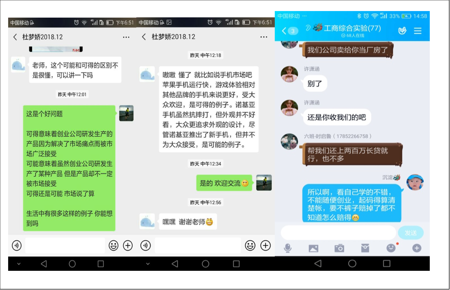 工商管理系教师在学院的有序安排下开始了疫情背景下新型教学模式的线上学习与探讨,老师们积极的注册各种平台账号,下载各种APP,并细致对比各种在线教学平台,将自己的实际教学体验在学院群里交流探讨,从而确保了正常开学前,每位任课老师都选择了最适合自己课程的教学平台,确保线上教学的顺利开展。有的老师还综合运用多种平台,实现对学生课前、课中以及课后的全方位教学与管理,有效激发了学生自主学习的能动性,也提升了线上教学效果。线上上课,不仅仅在于上了课,更重要的是结合一切可以用的网络资源,实现学生不仅参与了课程,更参与到学习当中。