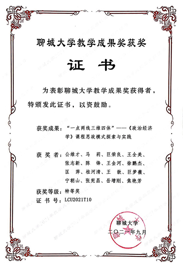 该成果是聊城大学、山东理工大学、青岛大学合作的结果,具有鲜明创新性:以“一观二主三度”铸学习之魂(唯物史观,主体和主义,温度、广度和深度),以“三维”视角挖掘课程思政案例和思政元素,以“四体”创新教学方法。通过实施课程思政,使学生增强了社会责任感、树立了诚信和团队意识、明确了职业生涯规划、提高了学业成绩。同时,该成果还对学院其他教学团队和学生,以及合作学校同类课程起到了辐射作用。