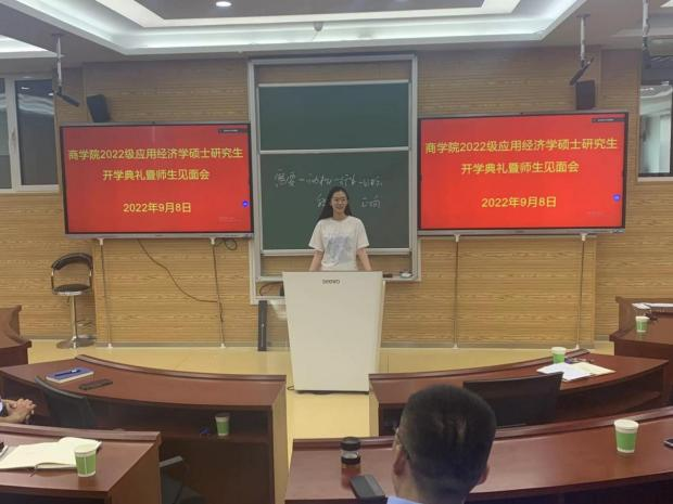 导师代表石子印教授,叮嘱同学们要牢牢遵守学术道德规范、注重研究方法的训练、掌握好计量方法,在研究生期间要多读书多思考、读好书、精读书,在校期间努力发表高层次科研文章。石教授祝愿同学们能够在探索知识、创造知识的过程中,获得成功。2021级研究生孟迪作为在校生代表,向大家介绍了经济学研究生已所发表的学术成果和浓厚的学术氛围,建议在接下来的研究生三年里能够找准目标,制定计划,根据导师研究方向和自身兴趣做好学术工作。希望学妹们能够珍惜时间,做到一起学习,共同进步。