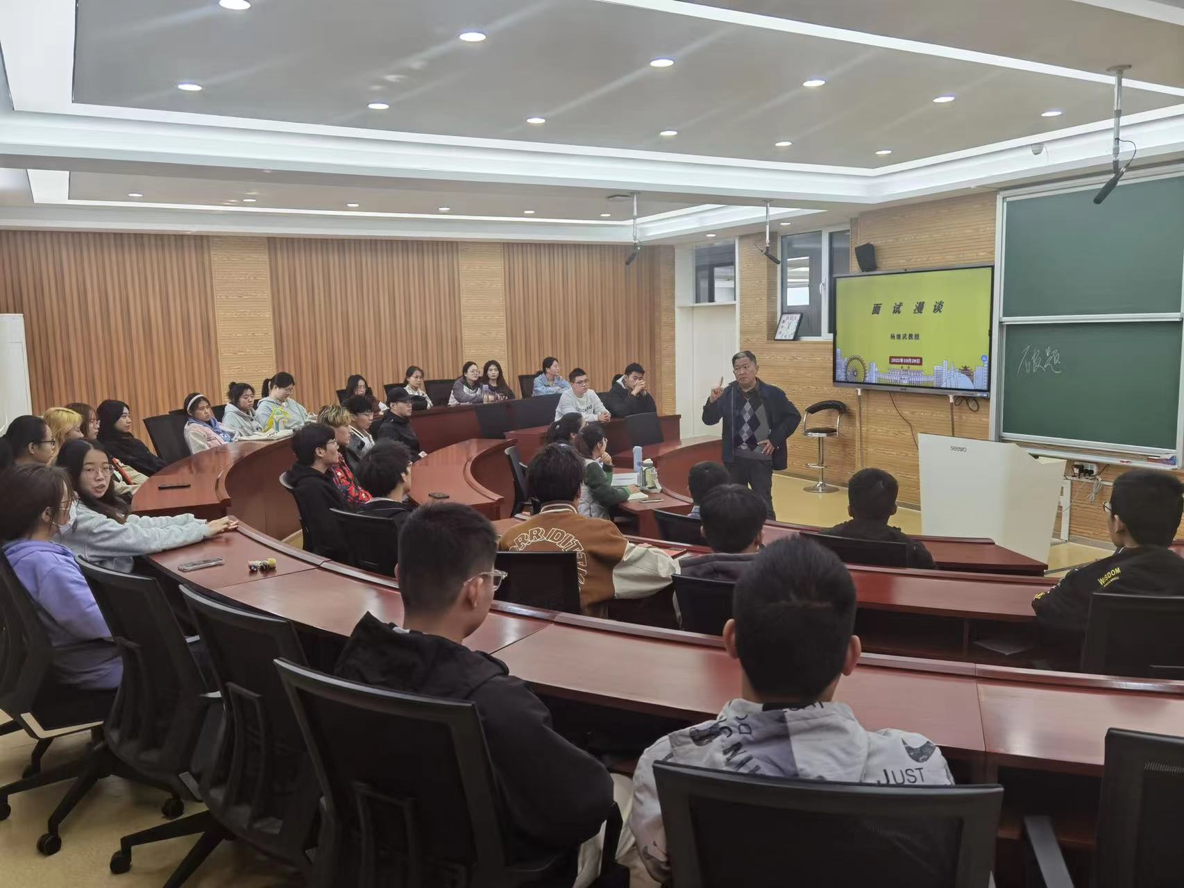 为使聊大学子了解更多的面试规则,顺利通过面试,10月28日,威斯尼斯人8188cc官网(质量学院)邀请我院退休教师杨继武老师于东校区1#708举办“面试漫谈”辅导讲座。