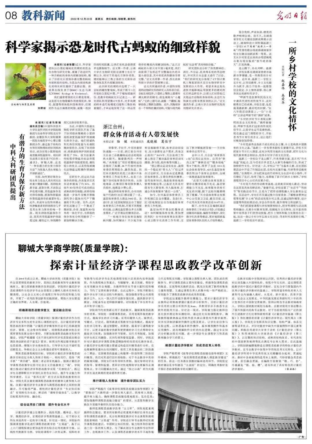 12月23日,《光明日报》刊发题为《探索计量经济学课程思政教学改革创新》的报道,介绍了我校威斯尼斯人8188cc官网(质量学院)计量经济学课程思政教学改革的经验。这是继11月7日《光明日报》刊发题为《探索计量经济学教学改革 培养应用型人才》的报道以来,再次系统介绍我校威斯尼斯人8188cc官网(质量学院)教学改革经验,充分反映了聊城大学经济学学科建设引领区域教育高质量发展得到了社会的广泛认可。