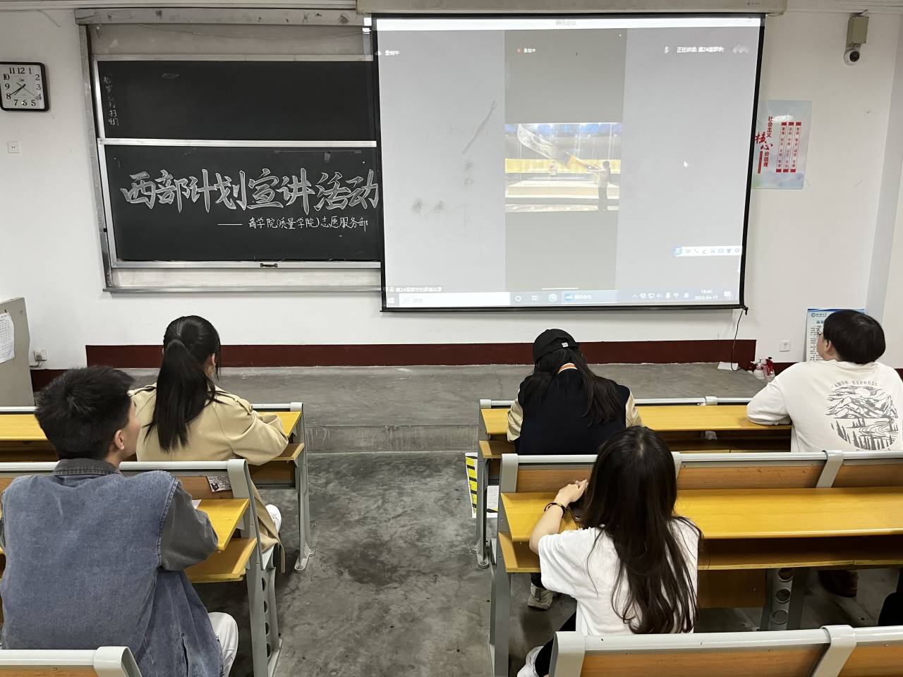 为进一步宣传大学生志愿服务西部计划项目,激发应届毕业生投身志愿服务的热情,给优秀毕业生提供一个奉献自我的广阔平台,4月17日,威斯尼斯人8188cc官网(质量学院)于东校区1#519举办西部计划宣讲活动。部分应届毕业生和部分2021级、2022级学生参加了此次活动。