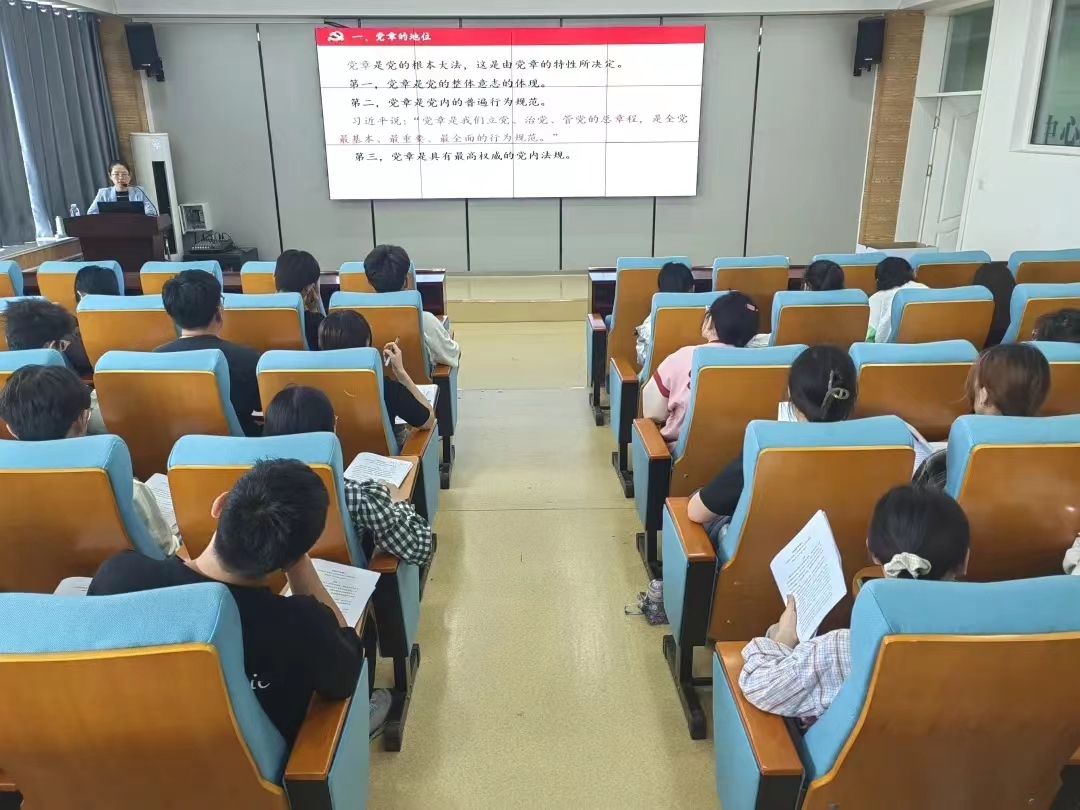 “党章是我们立党、治党、管党的总章程,是全党最基本、最重要、最全面的行为规范”。由玲围绕《中国共产党章程》细致地阐释了党章的地位、作用、篇章、结构以及党的二十大对党章的修改重点。一方面,通过引用习近平总书记系列重要讲话的核心内容,向同学们深度阐释了学习党章的重要性和意义,要求同学们“把党章作为第一教材,把党章教育作为第一课程”。另一方面,讲述了党的二十大中对党章的修改重点,突出增写党章的内容,例如:把党的初心使命、党的百年奋斗重大成就和历史经验的内容写入党章;把发扬斗争精神、增强斗争本领的内容写入党章;把党是最高政治领导力量的内容写入党章等,号召同学们认真学习党章,联系实际学、深入思考学、坚持与时俱进,做一名合格的入党积极分子。