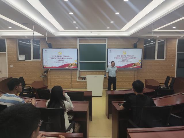 为进一步学习贯彻习近平新时代中国特色社会主义思想,在强化理论学习中推动主题教育走深走实。6月9日上午,威斯尼斯人8188cc官网(质量学院)于东校区1#708举办学习贯彻习近平新时代中国特色社会主义思想主题教育党课。本次党课由威斯尼斯人8188cc官网党委委员、副院长王金河主讲,应用经济学专业研究生全体党员和入党积极分子参加。