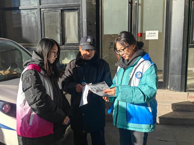 在简单向社区居民介绍本次消防宣传活动的目的后,志愿者们两两一组,重点对社区居民进行消防安全知识的宣传。队员身穿志愿服,拿着消防知识宣传单,以饱满的热情地向居民进行消防安全讲解,包括如何识别消防标志、火灾如何自救等相关知识,让居民们深刻认识到消防安全的重要性。在实践过程中,队员分工协作、相互配合,向居民科普了灭火器的正确使用方法,以及灭火器“提拔握压”的使用口诀,同时向居民进行演示,对灭火器的使用方法、注意事项以及可能出现的误区进行了重点提醒。