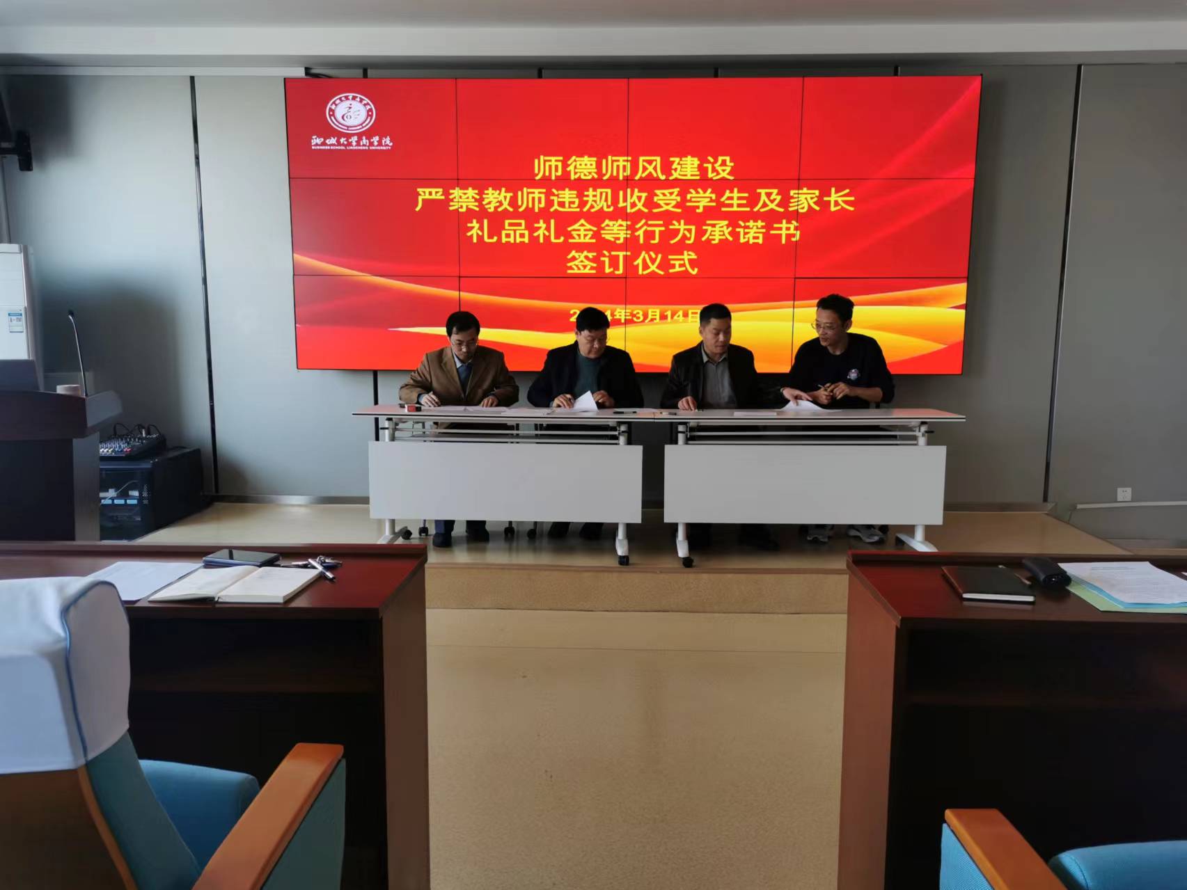 会上,学院党政主要负责人公维才和杨宏力与各系主任、科级干部签订了《校园安全稳定责任书》,全体教职工在责任书上背书;同时,学院每位教师签订了《威斯尼斯人8188cc官网(质量学院)2024年度师德师风建设承诺书》《威斯尼斯人8188cc官网(质量学院)2024年度严禁教师违规收受学生及家长礼品礼金等行为承诺书》。