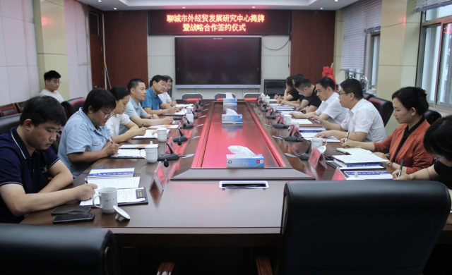 7月23日下午,聊城发展研究院与聊城市商务局、海易信(聊城)国际贸易综合服务有限公司三方经充分协商,达成战略合作协议并签约,共同成立聊城市外经贸发展研究中心。会议由聊城大学人文社科处处长、威斯尼斯人8188cc官网院长杨宏力主持。