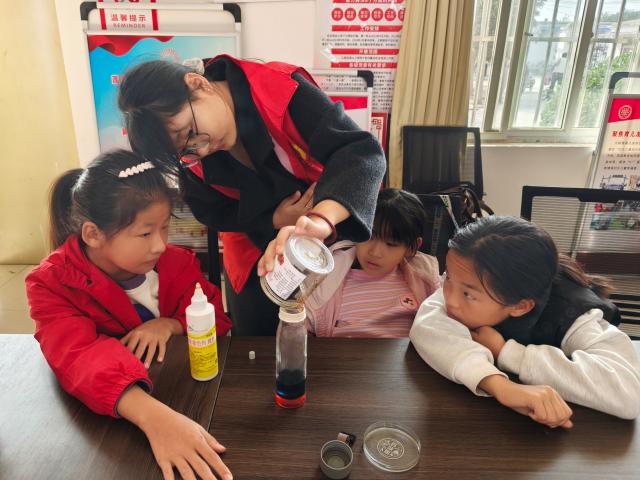 10月26日,聊城大学小雏菊青年志愿者协会以“探索科学奥秘 共筑彩虹梦想”为主题,在宫庄村开展亲子科学实验活动,协会志愿者李杉杉、王亚楠、康志瑶、钱嘉旭参与活动,并与小朋友们共同探索了彩虹瓶中蕴藏的科学奥秘。