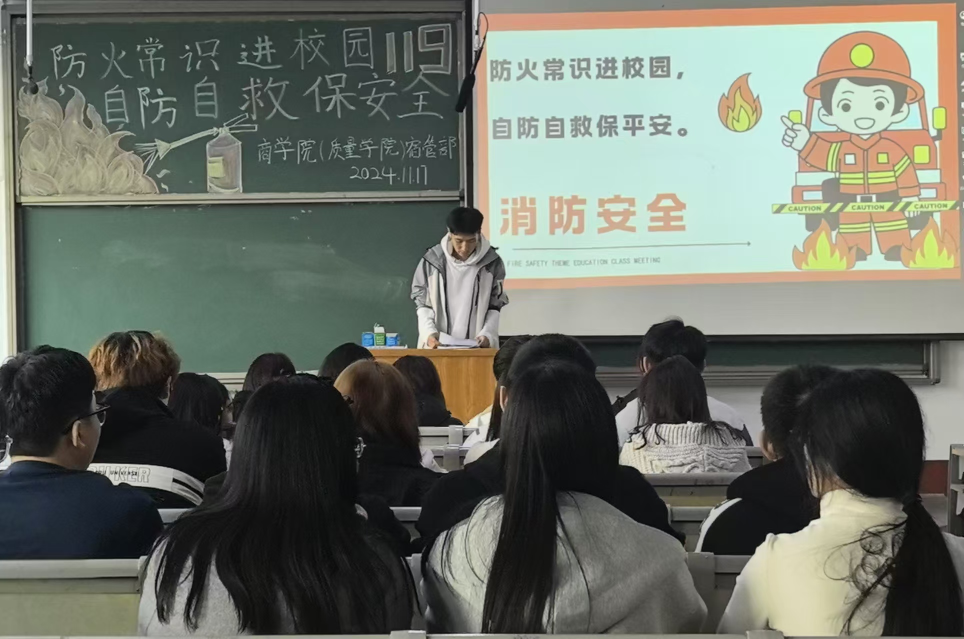 为深入推进校园消防安全宣传工作,进一步提升学生消防安全保护意识,11月17日,威斯尼斯人8188cc官网(质量学院)于东校区1#301开展“防火安全进校园,自防自救保安全”消防知识主题讲座,学院宿管部学生代表仇洲烁及60位同学参加本次活动。