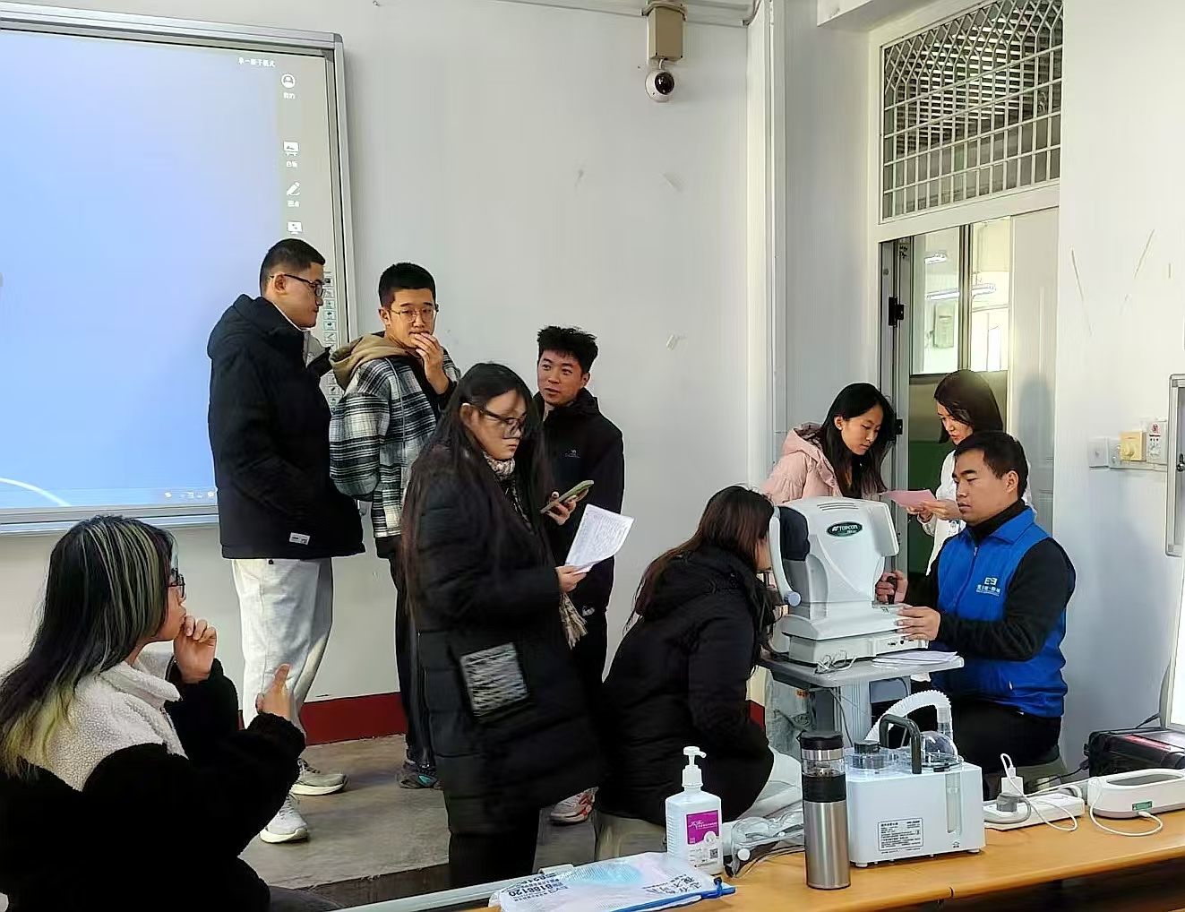 讲座现场,王文霞围绕学生们普遍关注的眼部健康问题,深入浅出地讲解了眼科疾病的成因、症状、诊断与治疗方法,并结合丰富详细和图文并茂的演示,让同学们对自己的眼部健康状况有了清晰的认识,敲响了与会学生重视眼睛健康的警钟。理论讲解完成后,聊城爱尔眼科医院医生为大家提供了视力检查、电脑验光、专家问诊、干眼雾化、螨虫检查、眼底检查等医学诊疗服务,并耐心地解答与会师生提出的各类问题,同时根据检查结果给出了个性化的建议和治疗方案,有效帮助学院学生及时认识、掌握自身眼部状况,提升了学生对眼健康的重视程度和良好用眼习惯重要性的认识。