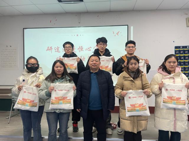 学院“考研福袋”内涵的学习用具、旺仔牛奶和寓意“成功”的橙子等物品,凝结着学院对考研学子的深深祝福和坚定支持。与会领导、老师在赠送“考研福袋”的同时,与考研学子进行了亲切的交流,深切了解了同学们的备考情况、学习状态以及学习生活需求,并结合实际情况给予了详细的指导和建议,鼓励同学们坚定信念,保持积极的心态和良好的学习节奏,在最后的冲刺阶段全力以赴。